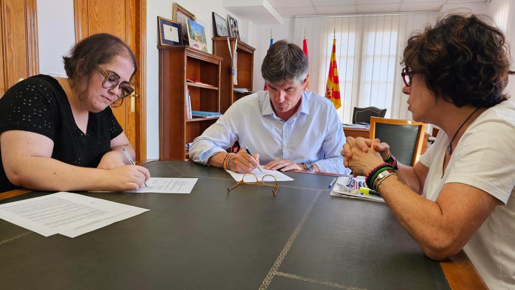 El Alcalde Marcos Zaragoza, la edil de Comercio, Rosa Llorca, y la presidenta de la asociación de vendedores del Mercat Central, Marta Llorca, han firmado un convenio de colaboración entre ambas entidades con el fin de gestionar las instalaciones del mercado municipal y promover el comercio local.