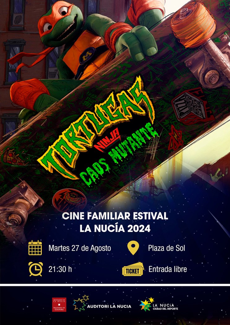 Las próximas películas de este Ciclo de Cine Familiar Estival de La Nucía 2024 son: “Ninja Turtles. Caos Mutante” (27 de agosto en plaza del Sol) y “VIII La Noche más corta” (jueves 29 de agosto en plaça dels Músics).