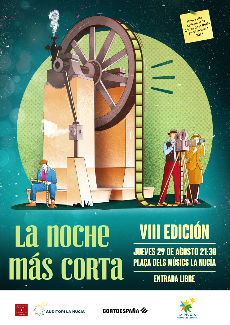 La Noche Más Corta forma parte de las actividades del Festival de Cortos de La Nucía, festival que celebrará la décimo primera edición los días 30 y 31 de octubre de 2024. Esta sesión veraniega será este jueves 29 de agosto a las 21,30 horas en la plaça dels Músics, con entrada libre y gratuita.