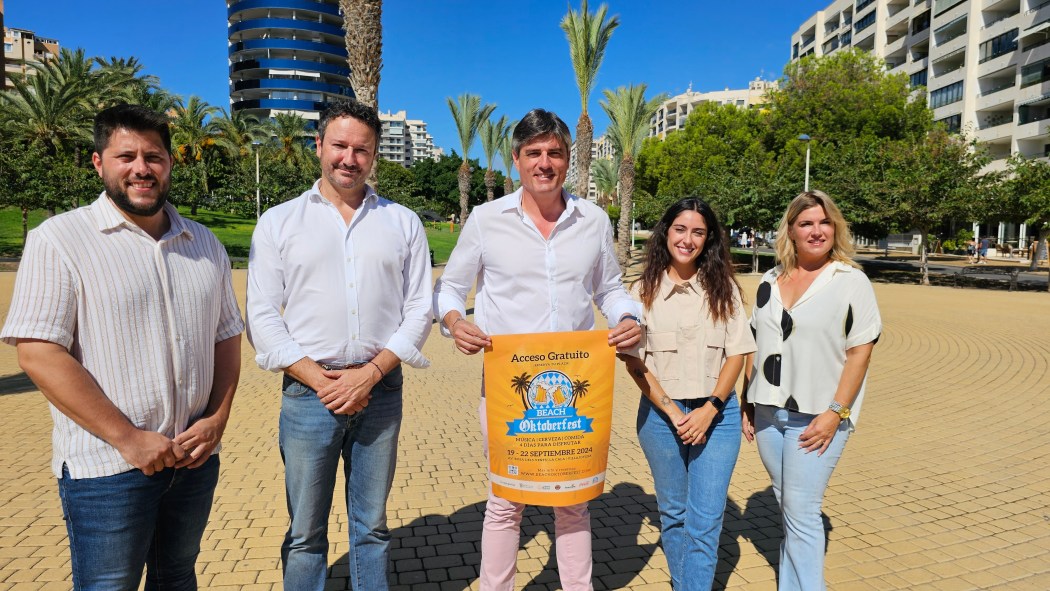 El Alcalde de Villajoyosa, Marcos Zaragoza, el concejal de Fiestas, Jaime Santamaría, las ediles de Fiestas y de Turismo de Finestrat, Sara Llorca y Donna Summer, y el responsable de la empresa promotora de la Beach Oktoberfest, Juan José Calvo, han presentado esta iniciativa que han calificado como “una nueva oferta de ocio y gastronomía para los residentes y los turistas”.