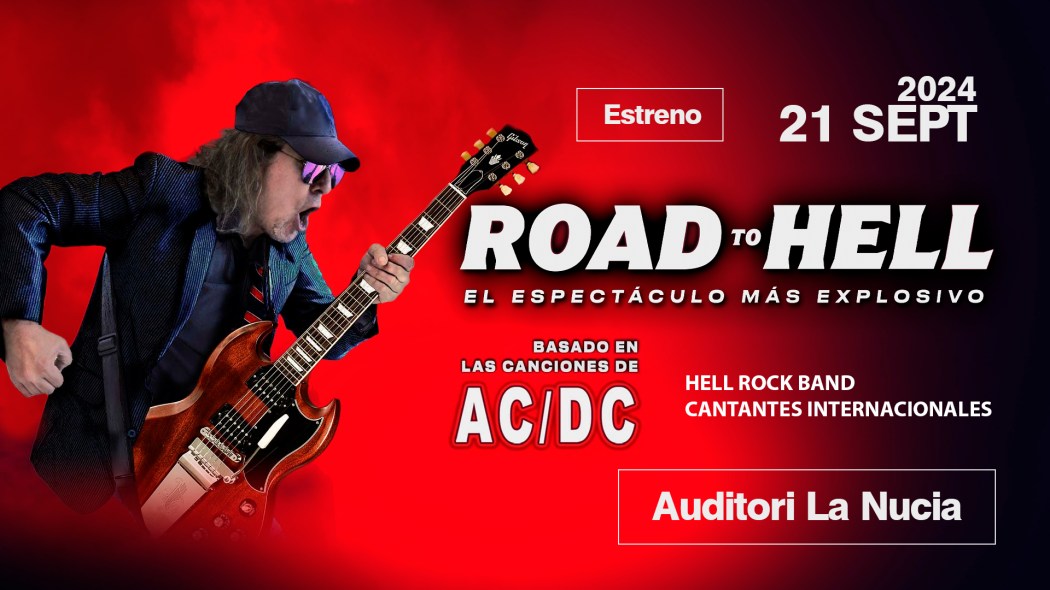 El sábado 21 de septiembre a las 20 horas l’Auditori de La Nucía acogerá el estreno de la nueva producción musical “Road to Hell”, basado en las canciones en la legendaria banda de rock AC/DC. Este nuevo espectáculo ha sido promovido por los creadores de los exitosos Symphonic Rhapsody of Queen y de Saturday Night Disco. Las entradas se pueden adquirir en las taquillas de l’Auditori y en entradas.com