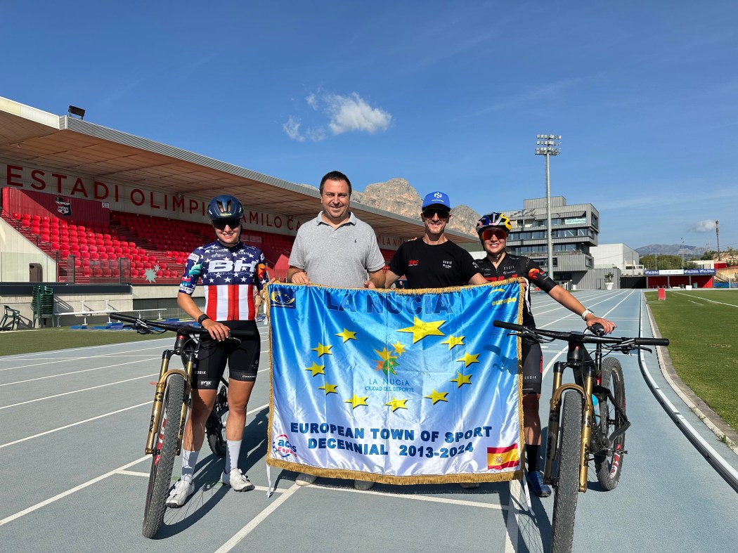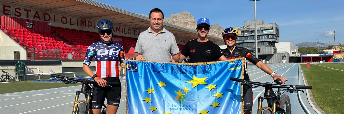Sergio Villalba, concejal de Deportes, saludó personalmente a Sofía Waite y le felicitó por su título nacional de XCC y le deseó suerte para la recta final de la temporada, así como a Rocío del Alba y su director Carlos Coloma. En esta recepción posaron todos con la bandera de “La Nucía, Villa Europea del Deporte 2024” que concedió ACES Europe al municipio el pasado diciembre en el Europarlamento de Bruselas.