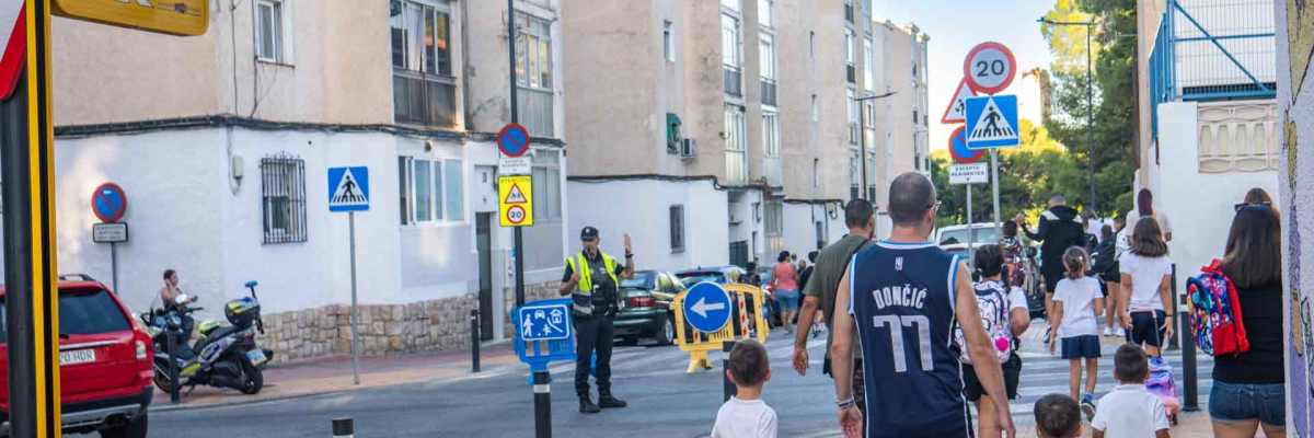 Asimismo, poco antes de las 9.00 de la mañana, en la confluencia del CEIP Serra Aitana, personal de Movilidad, con la colaboración de la Policía Local, han monitoreado el acceso peatonal a la zona a través de su itinerario escolar marcado, como en el resto de barrios de Benidorm, con los característicos ‘lápices amarillos’ que tienen por objetivo facilitar el acceso de los pequeños estudiantes y sus familiares al colegio.