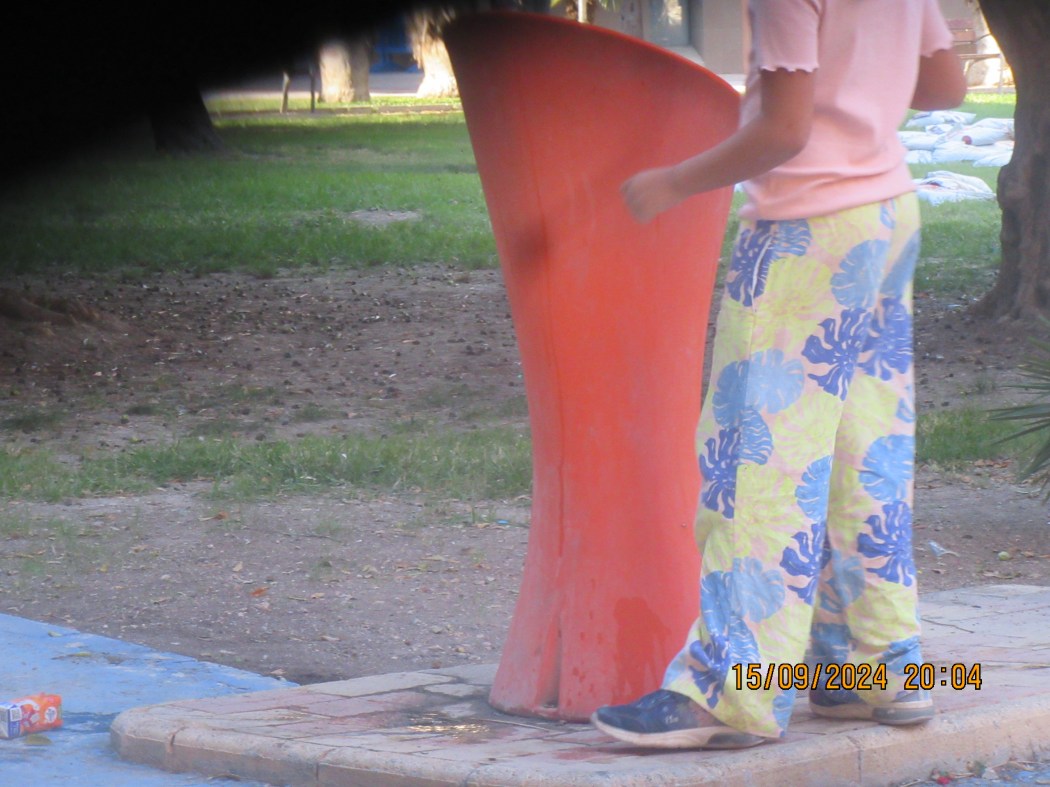 Hace días, concretamente ultimo domingo de fiestas, decimos que había una frente, ¡bonita!, frente a la cafetería del parque, pero que no daba agua y la chiquillería, cuando salen del cole de la Carmelita, no pueden saciar su sed, salvo que compren agua en los bares de su entorno. El domino anterior al ultimo el tema se ha solucionado u y ya hay agua. Digamos que es una nueva fuente ya que los grifos se han cambiando dando facilidades para llenar botellas.