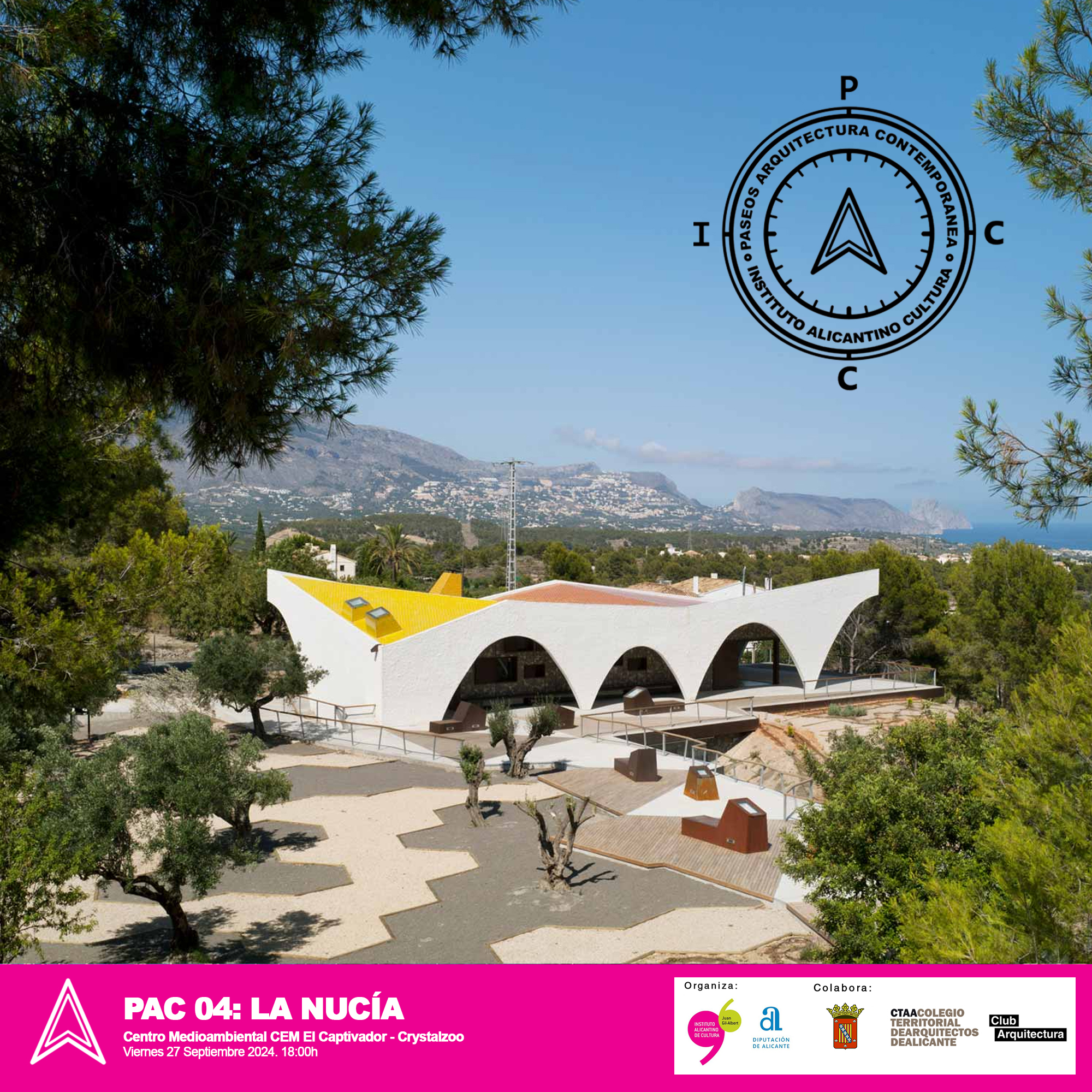El Instituto Alicantino de Cultura, Juan Gil-Albert ha organizado una “visita arquitectónica” gratuita para este viernes 27 de septiembre a las 18 horas al Centro Educativo Medioambiental El Captivador de La Nucía. Esta visita al CEM Captivador se enmarca dentro del ciclo “PAC. Paseos de arquitectura contemporánea”. Toda las personas interesadas en esta visita arquitectónica pueden inscribirse de forma gratuita en: bit.ly/PACarquitectura4
