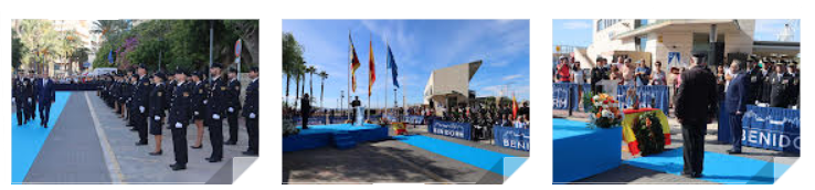 La conmemoración se ha iniciado pasadas las once de la mañana, tras la interpretación del Himno de España y cuando comisario y primer edil han pasado revista a los policías nacionales que participaban en la formación, en presencia de representantes del Decanato de la judicatura de Benidorm, Fiscalía, jefes y mandos del Cuerpo Nacional de Policía, de la Guardia Civil y de los cuerpos de Policía Local de Benidorm y de otros municipios de la comarca. Igualmente, también han acompañado a la Policía la vicecónsul de Reino Unido en Alicante, Sara Munsterhjelm; el senador Agustín Almodóbar; numerosos miembros de la Corporación Municipal de Benidorm y representaciones de asociaciones empresariales, sociales y ciudadanas.