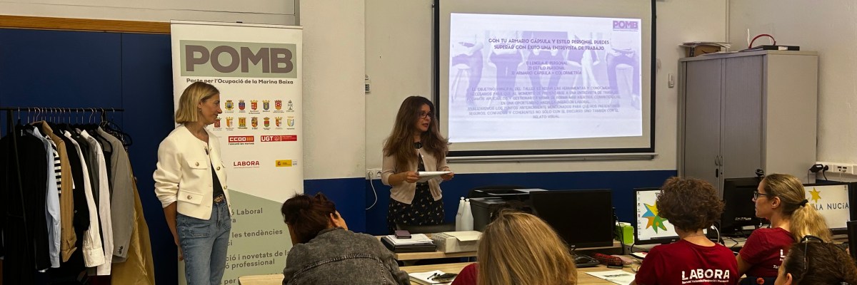 Esta mañana se ha realizado el curso “Con tu Armario Cápsula y Estilo Personal, puedes Superar una Entrevista de Trabajo”, en la Escuela de Oficios. Veinte alumn@s han acudido a esta tercera formación organizada desde el Pacte per l’Ocupació de la Marina Baixa (POMB). El alumnado ha aprendido consejos y recomendaciones sobre el lenguaje corporal, el estilo de vestimenta y la colorimetría para afrontar y superar una entrevista de trabajo. El siguiente curso será el de “Creando mi Marca Personal” y las inscripciones siguen abiertas en https://pomb.es/inscripcion-a-taller/