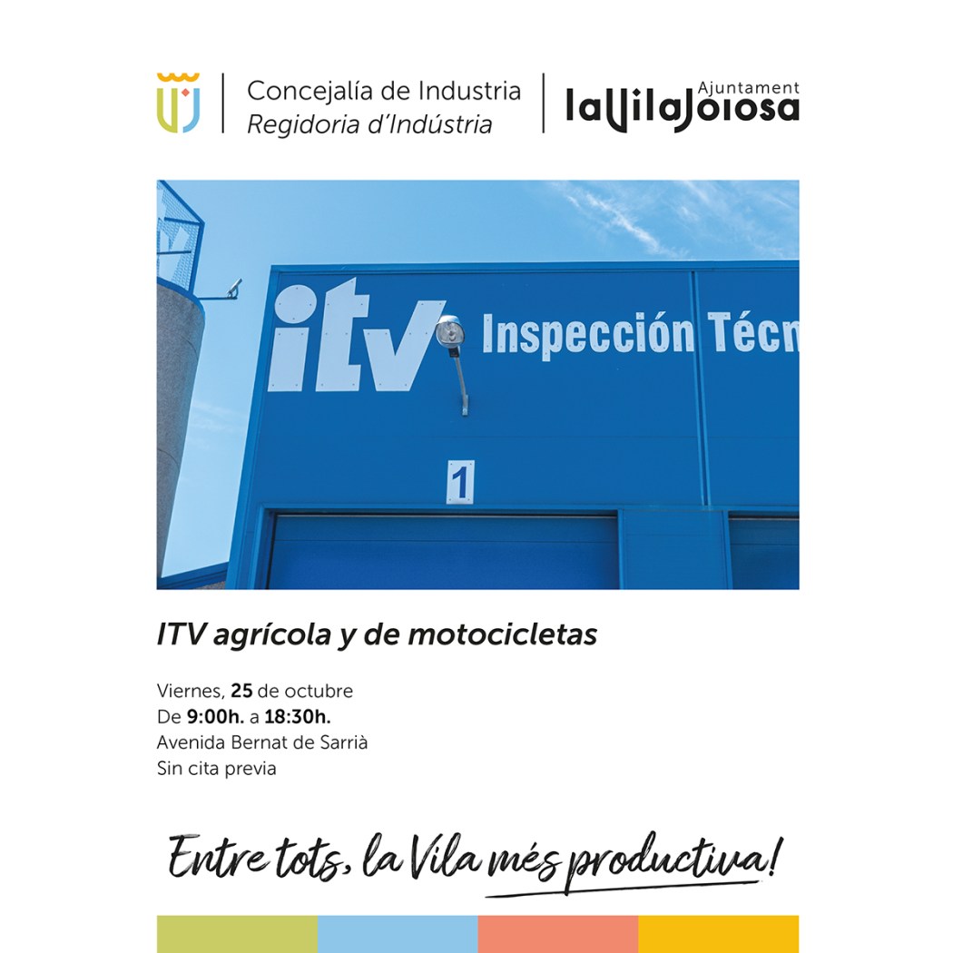 Conforme anunció el Alcalde Marcos Zaragoza en el mes de abril, tras su reunión con el director general de Sitval, la sociedad creada por la Generalitat Valenciana para la gestión de las ITV, este servicio móvil de control e inspección de los vehículos visitará Villajoyosa periódicamente con el fin de facilitar a los vecinos que puedan llevar cómodamente sus vehículos y maquinarias agrícolas, tales como tractores, remolques y cosechadoras, así como ciclomotores, con el fin de mejorar la seguridad vial y contaminación ambiental en el municipio.