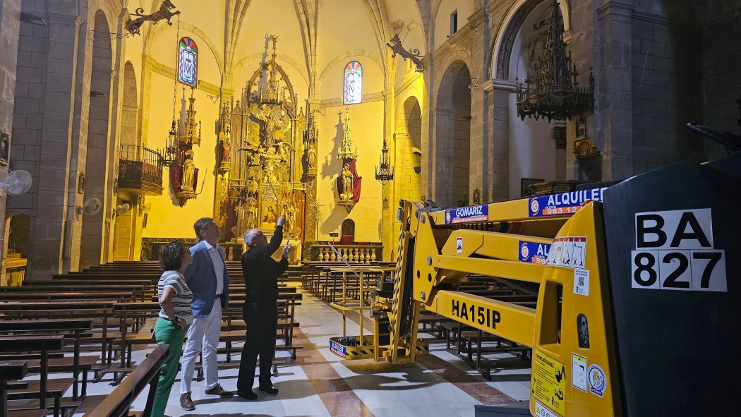La parroquia de Nuestra Señora de la Asunción está renovando y ampliando su instalación eléctrica con el fin de aplicar un sistema de iluminación led que no sólo reduzca el consumo energético, sino que, además, cree una nueva ambientación lumínica en el interior del templo, declarado Bien de Interés Cultural.