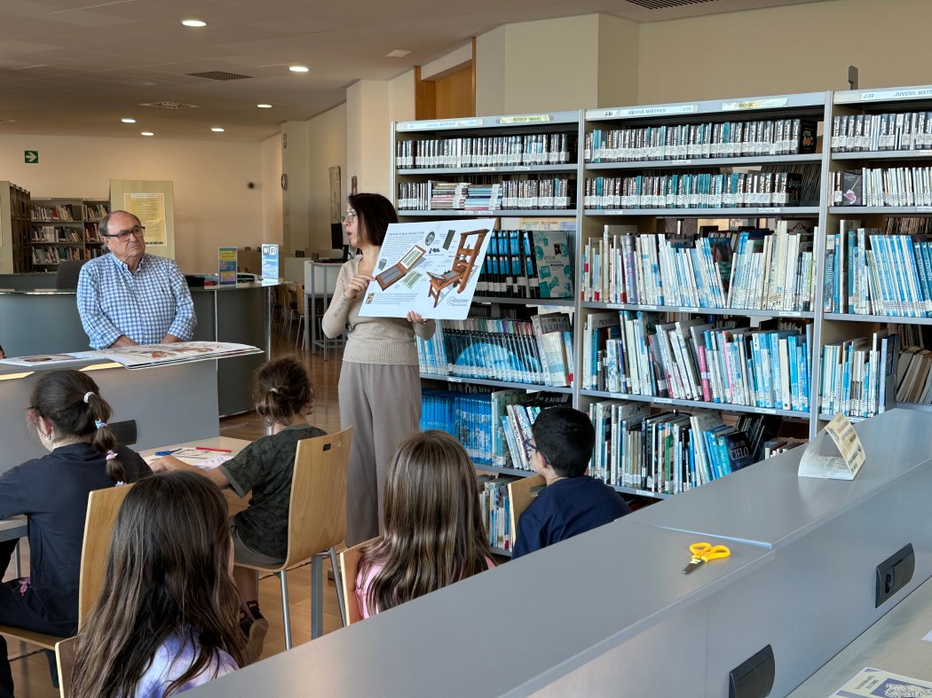 Durante la misma se ha explicado a los alumnos y alumnas cómo se organizan los libros de conocimientos en las bibliotecas por una clasificación llamada Clasificación Decimal Universal, y también se ha hecho un breve recorrido por la historia del libro hasta la invención de la imprenta. Para finalizar la visita se ha realizado un taller sencillo, de “elaboración de un libro simple recreando el formato de esos primeros libros impresos”. La segunda acción que han realizado es buscar libros por temáticas a partir del número indicado por la bibliotecaria, para aprender a localizarlos.