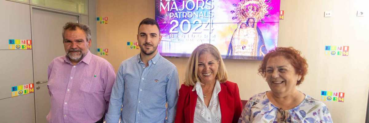 La Comissió de Festes Majors Patronals y el Ayuntamiento de Benidorm han dado a conocer este jueves la programación completa de la Semana Cultural de las Festes Majors Patronals de este año, que se celebra en los días previos a los festejos y que contará con actividades que abarcan distintas disciplinas culturales y artísticas, como la música, el teatro, la proyección de un documental y magia, así como la apertura de un nuevo espacio cultural y expositivo. En concreto, como ya anunció días atrás el alcalde, el Aula del Mar. El concejal de Cultura del Consistorio benidormense, Jaime Jesús Pérez, ha presentado todos estos actos acompañado de las concejal de Fiestas, Mariló Cebreros, así como de la presidenta y el vicepresidente de la Comissió de 2024, María Dolores Cano y Alfonso Segarra.