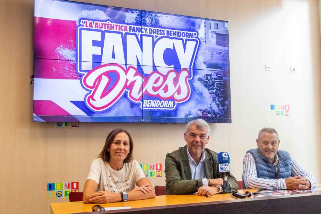 Las calles del Rincón de Loix y otras zonas de Benidorm volverán a llenarse de colorido el próximo jueves, 14 de noviembre, apenas un día después de finalizar las Festes Majors Patronals, con la celebración de la conocida como ‘Fancy Dress Party’, una fiesta de disfraces que atrae cada año a miles de británicos y que es “todo un referente en la Comunitat Valenciana”. Así la ha calificado este viernes el concejal de Eventos del Ayuntamiento de la ciudad, Jesús Carrobles, quien ha presentado ante los medios de comunicación los primeros detalles de esta nueva edición, en compañía de Irene Carreño y de Manolo Nieto, gerente de Abreca e impulsor de esta celebración, respectivamente.