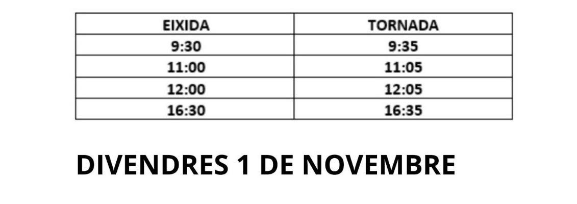 El jueves 31 habrá 4 servicios de ida y de vuelta, desde las 9:30 horas de la mañana hasta las 16:30 horas de la tarde, mientras que el viernes 1 habrá 7 servicios de ida y de vuelta, desde las 9:30 horas de la mañana hasta las 17:00 horas de la tarde.