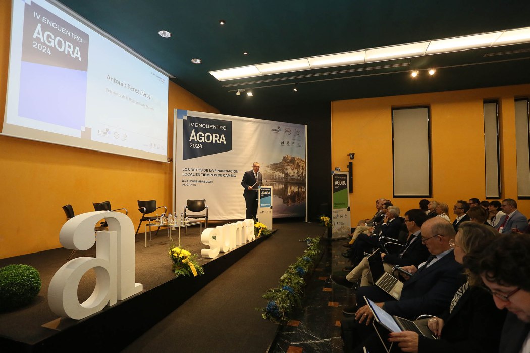 - El presidente de la Diputación de Alicante, Toni Pérez, ha inaugurado esta mañana en el MARQ la jornada de conclusiones del IV Encuentro Ágora sobre Financiación Local centrada en el análisis de los problemas y preocupaciones que la gestión y recaudación tributaria plantea a los entes locales, entre ellos la tasa de recogida de basura derivada de la entrada en vigor de la nueva ley de residuos. Suma Gestión Tributaria ejerce de anfitrión de este encuentro, que arrancó ayer y que promueven la FEMP y la Diputación de Badajoz