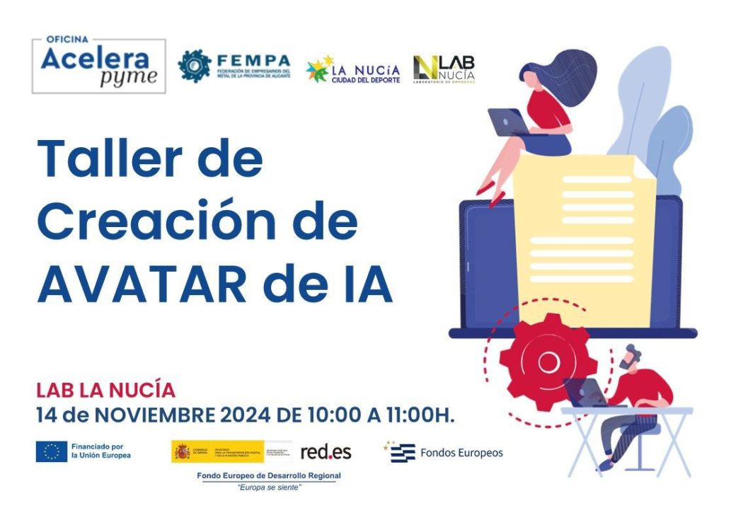 El taller de Creación de Avatar de IA (Inteligencia Artificial) tendrá lugar mañana jueves 14 de noviembre a las 10 horas en Lab_Nucia. Una sesión formativa dedicada a descubrir funcionalidades en el mundo de la Inteligencia Artificial y a creación de avatares digitales. El objetivo final es seguir acercando y ayudar en la consecución de la transformación digital a todas las empresas, especialmente a las pequeñas y medianas empresas (Pymes) y autónomos de La Nucía. La inscripción para estas formación es gratuita y se puede realizar en la web de Lab_Nucia: http://lab.lanucia.es/Taller-Creacion-Avatar-IA