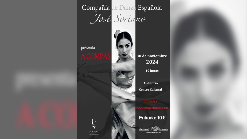 El espectáculo ‘A Compás’, de la compañía de danza y flamenco José Soriano, llega este próximo 30 de noviembre a las 19.00 horas al Centro Cultural de Benidorm. Así lo ha recordado hoy el edil de Cultura, Jaime Jesús Pérez, quien ha informado que “las localidades para este espectáculo ya están a disponibles al precio de 10 euros en www.entradasatualcance.com”.