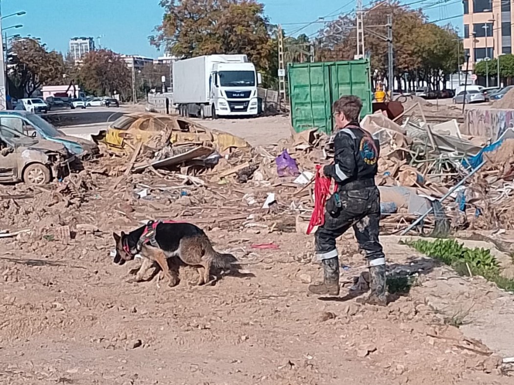 Desde el pasado miércoles voluntarios de la Asociación nuciera Geir-K9 están ayudando en Valencia, en las zonas afectadas por la DANA, en la labor de búsqueda y rescate entre escombros acumulados por las riadas y fuertes lluvias. Se han unido al servicio de emergencia, solicitados por el Consorcio de Bomberos de Valencia, en el Puesto de Mando Avanzado ubicado en Paiporta.