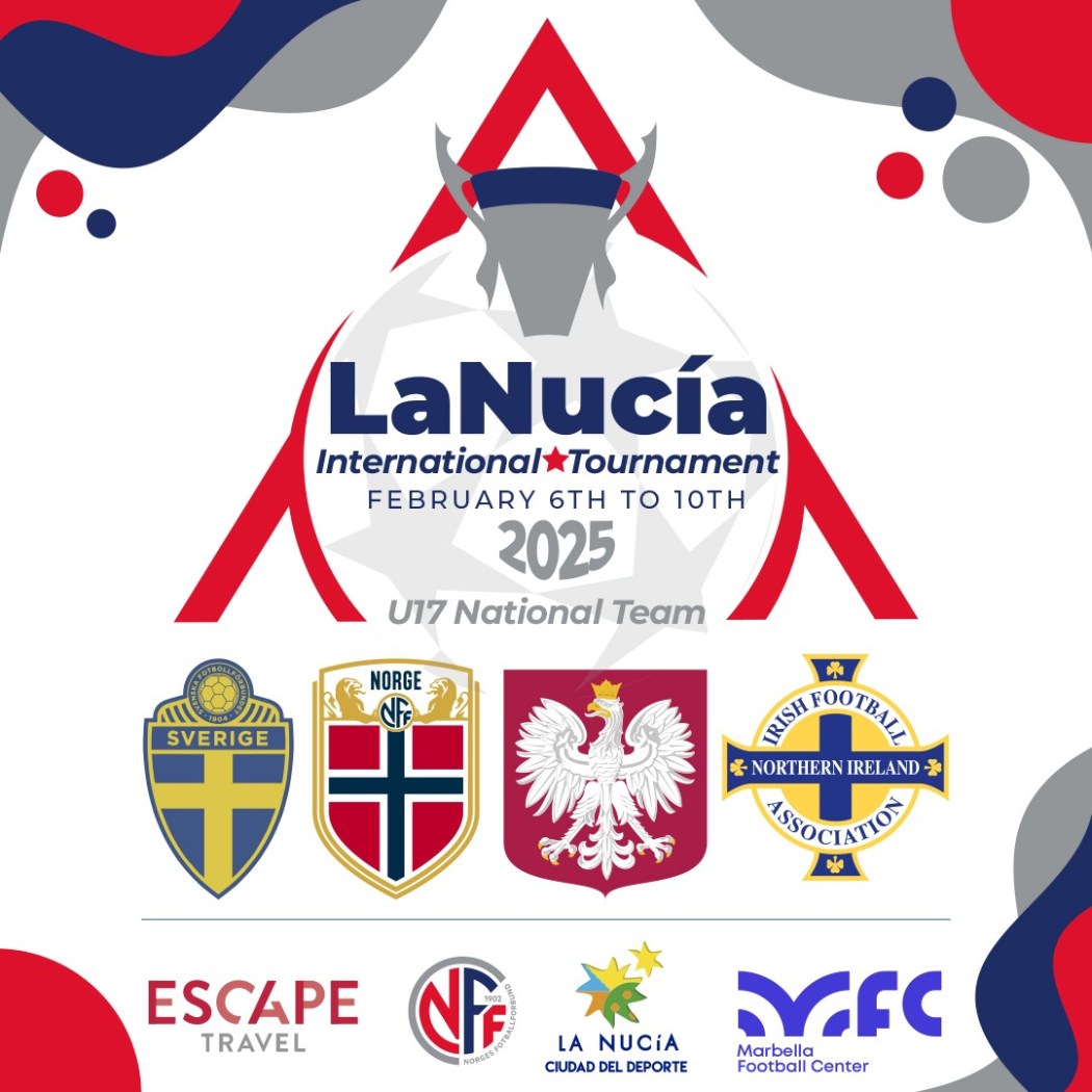 “La Nucía International Tournament U17” reunirá a las selecciones sub 17 masculinas de fútbol de Noruega, Suecia, Irlanda del Norte y Polonia. Este torneo se desarrollará del 6 al 10 de febrero en el Estadi Olímpic Camilo Cano. Un cuadrangular de fútbol de primer nivel con algunos de los mejores talentos del fútbol europeo. Todos los partidos serán de puertas abiertas, por lo que la entrada será libre y gratuita para el público.